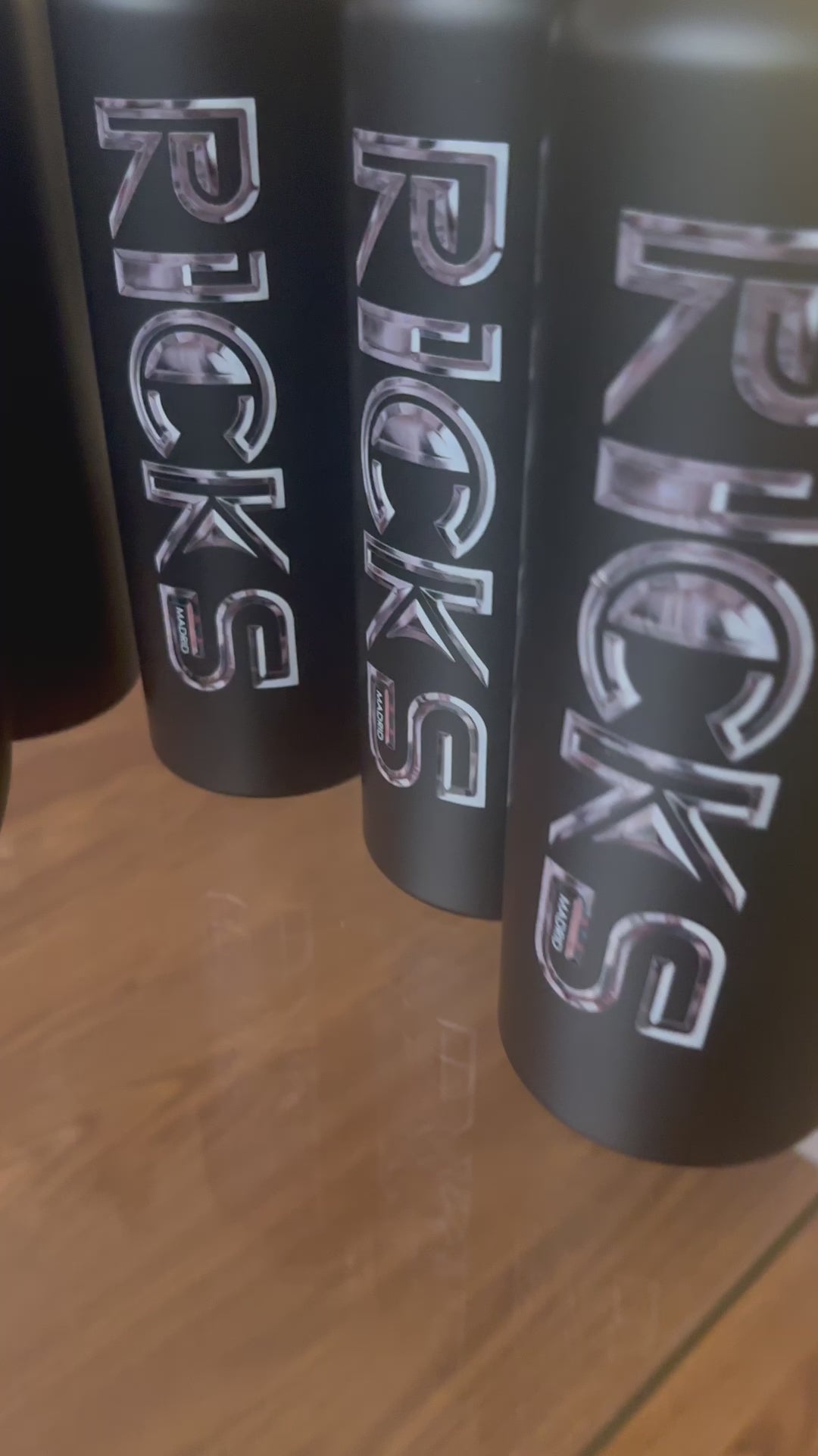 Regala a tus clientes y amigos un fantástico bidón de aluminio con tu logo/marca a todo color. Bidón mate con presonalizacion en brillo.